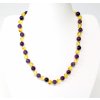 Jantarové korálky - kulaté jantarové a tmavý ametyst